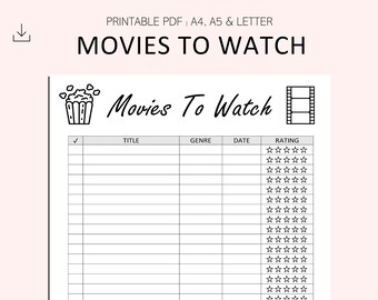 Movies To Watch List Movie Tracker Printable Movie List Etsy